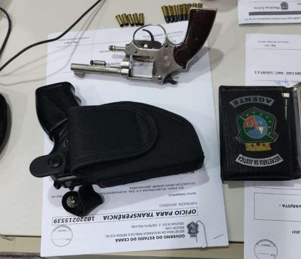 Com Santonardo, foram apreendidos um revólver calibre 22 com oito munições intactas e cinco deflagradas, além de uma arma airsoft e um par de algemas.