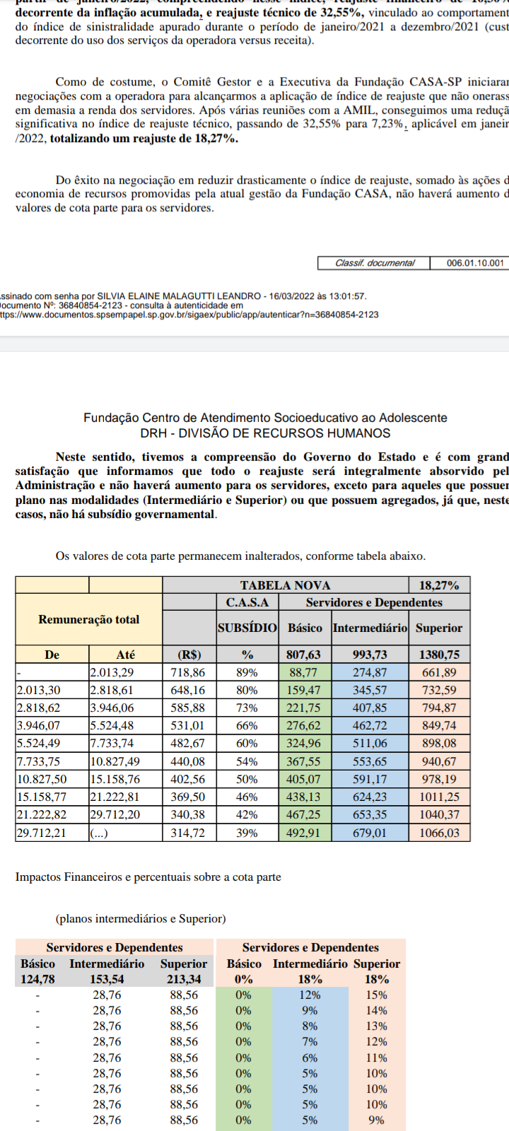 pleiteou junto à Fundação CASA-SP, um reajuste total de 46,20% para serem aplicados a